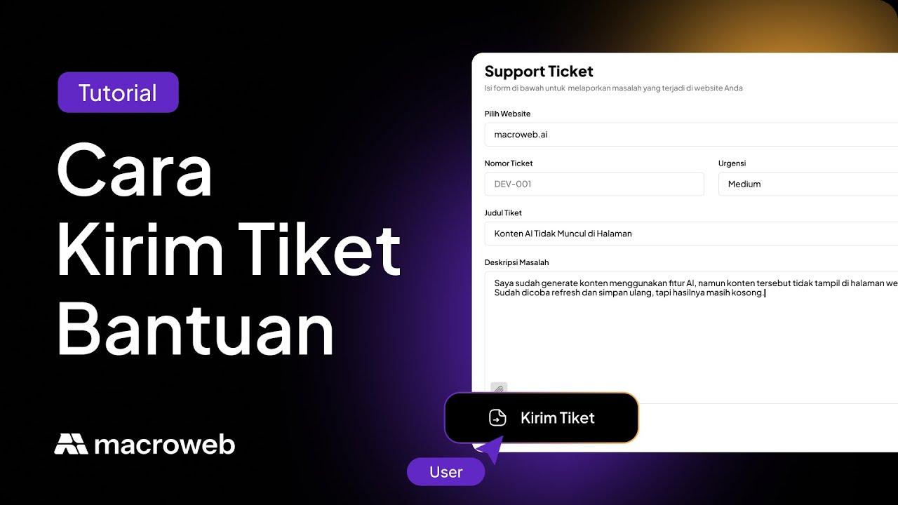 Pelajari cara membuat dan mengirim tiket bantuan untuk mendapatkan dukungan teknis dari tim Macroweb dengan cepat.