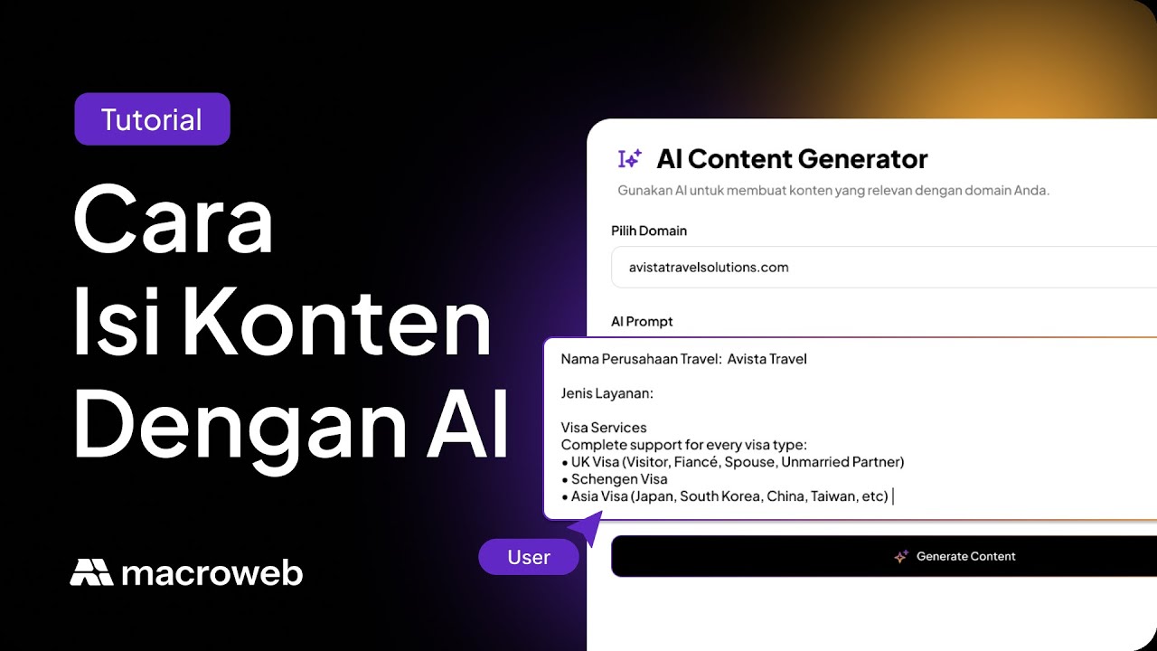 Generate konten website profesional secara otomatis menggunakan AI, sempurna untuk mengisi halaman website dengan cepat.