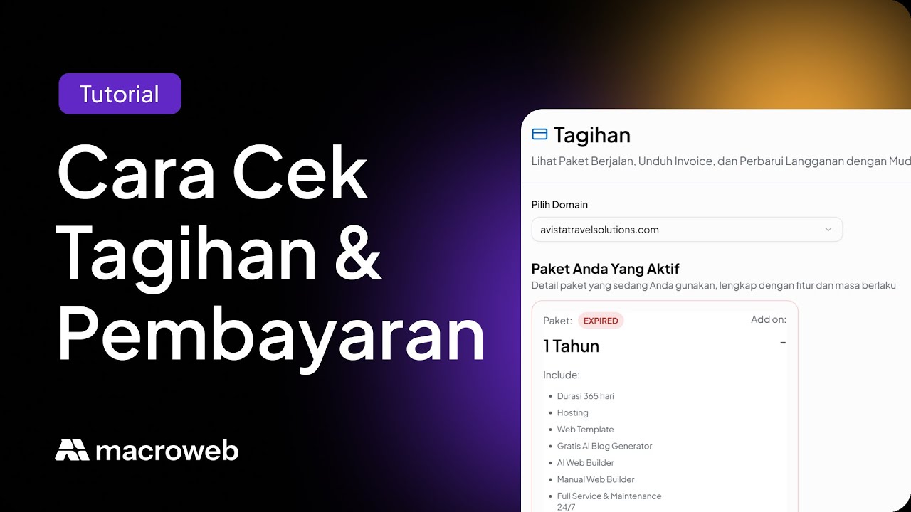 Panduan melihat riwayat tagihan dan melakukan pembayaran untuk layanan website Anda di dashboard Macroweb.